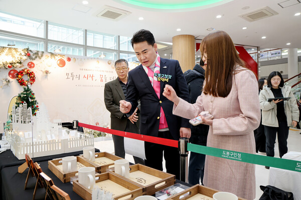 오언석 도봉구청장(가운데)이 ‘메이커스쿨 아이디어 상품개발대회’ 시상식에서 수상 작품을 둘러보고 있다(2024. 12. 20. 도봉구청 메이커스쿨 도봉). 제공=도봉구청 서울 도봉구(구청장 오언석)가 미래 인재 양성의 거점인 ‘메이커스쿨 도봉’을 구청사로 이전한 뒤, 구민들의 참여와 만족도가 큰 폭으로 증가한 것으로 나타났다.